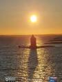 Die Gezeiten bestimmen, ob der Leuchtturm sich mit felsigem Untergrund oder mit umspülten Turmsockel präsentiert.