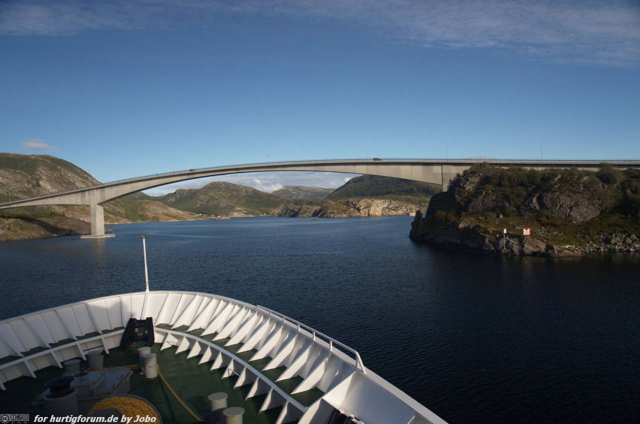 Zwischen Trondheim und Rørvik durchqueren die Hurtigrutenschiffe im Sommer, meist nur bei gutem Wetter, den engen Stokksund. In dem schmalen Sund, nach Unterquerung der Stokksundbrücke, muss das Schiff um einen Felsen herum fahren. Vor dieser 90° Kehre muss zuvor das Signalhorn betätigt werden, damit entgegenkommende Schiffe gewarnt sind.